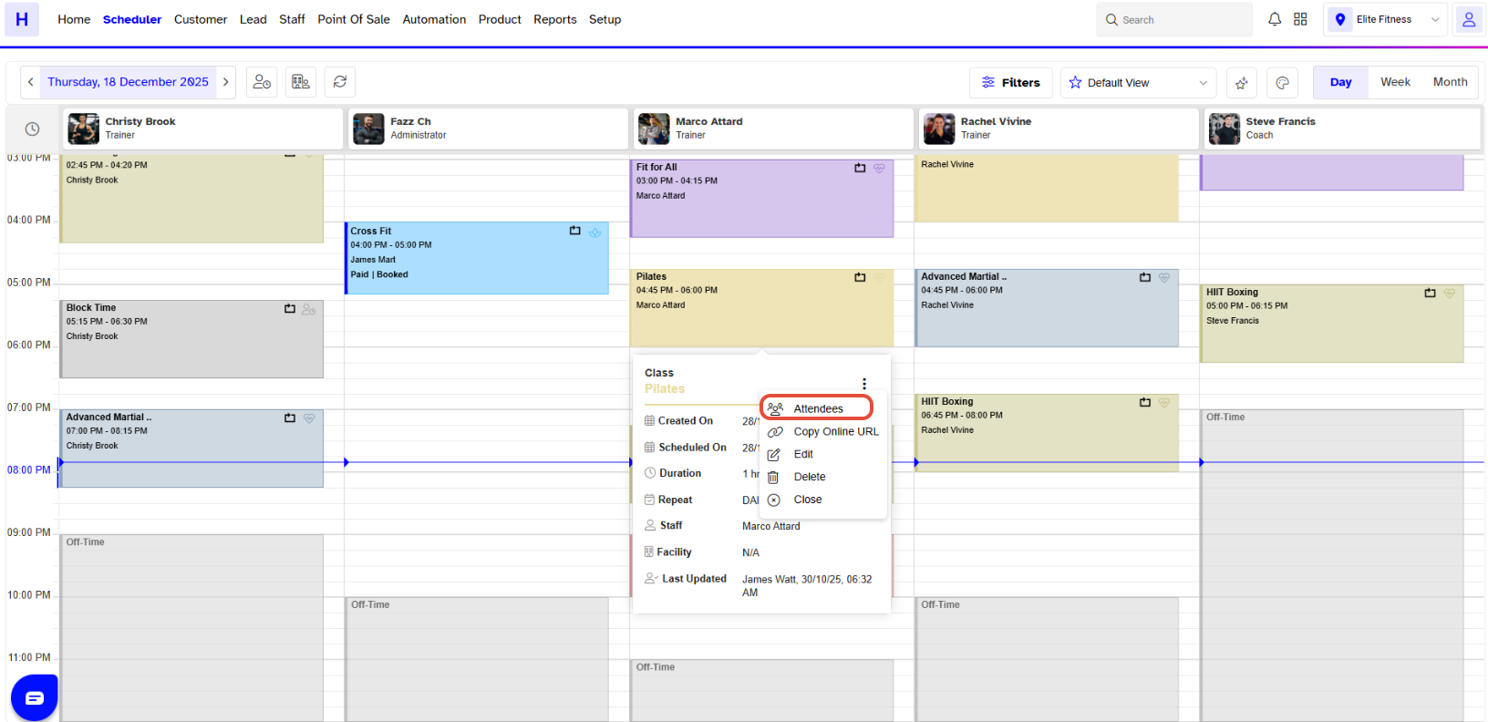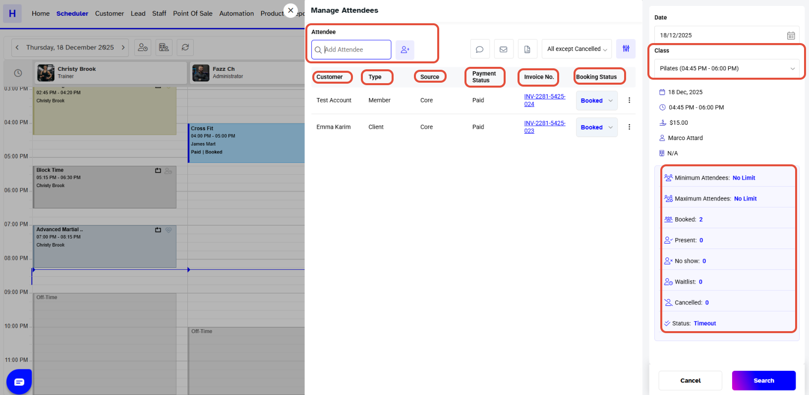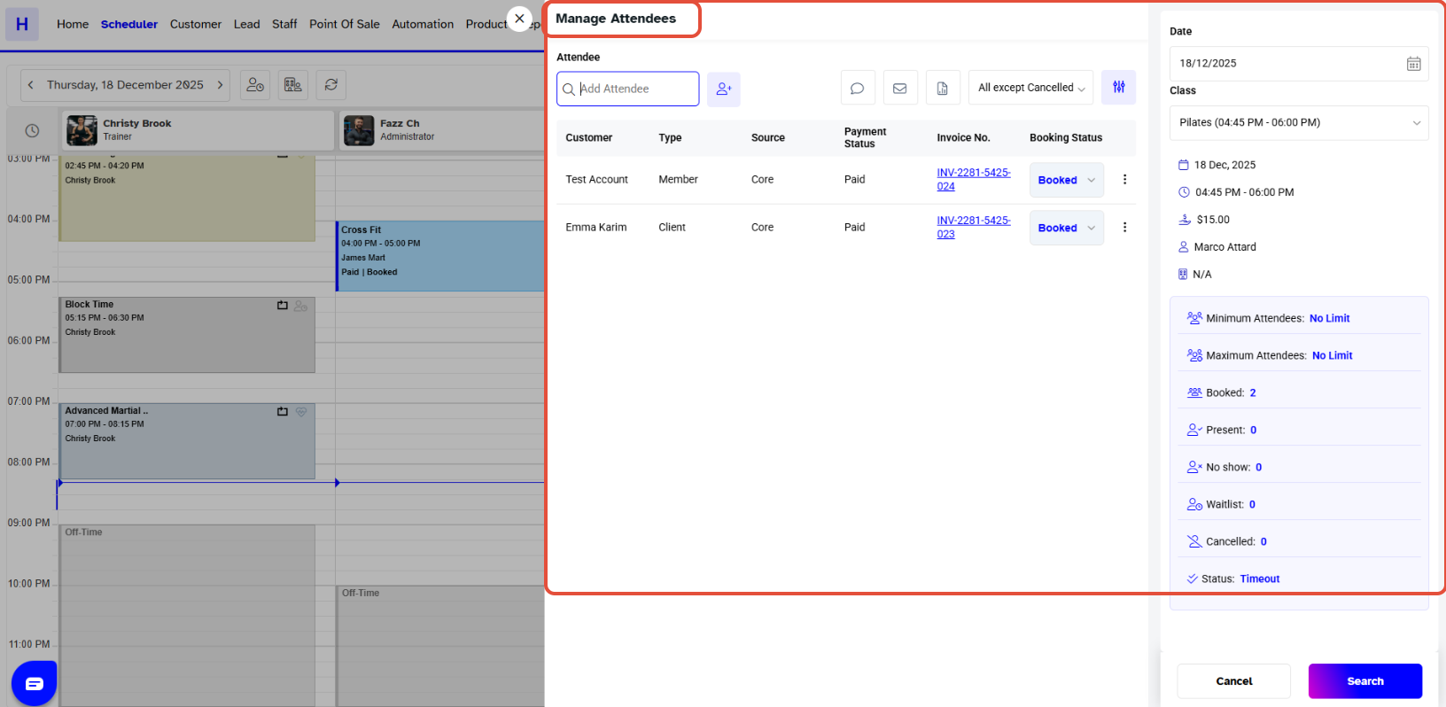 Move down to the Attendee Section, and the Attendees list of that Class will display on the Screen.