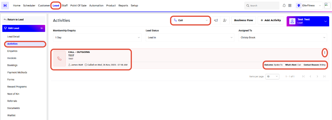 - After you have filled out the necessary information, you will see your Lead Call under the Calls section.