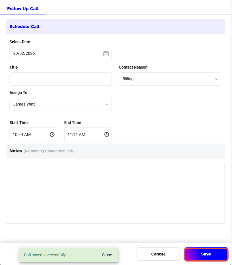 - Click on Save to schedule your Lead Call.
