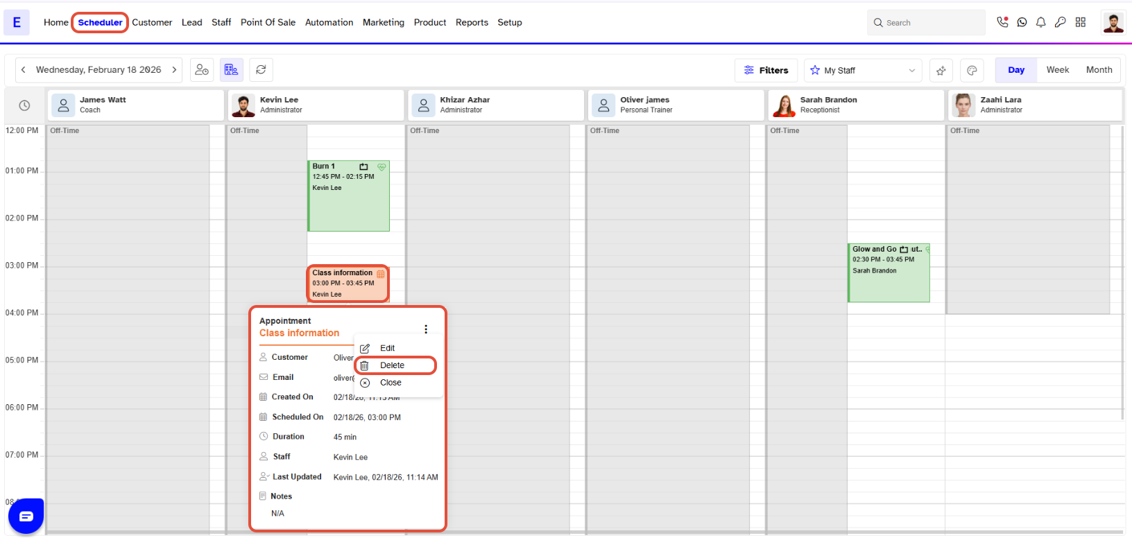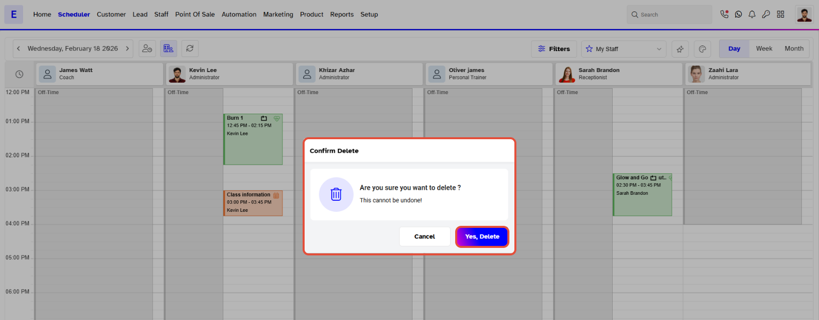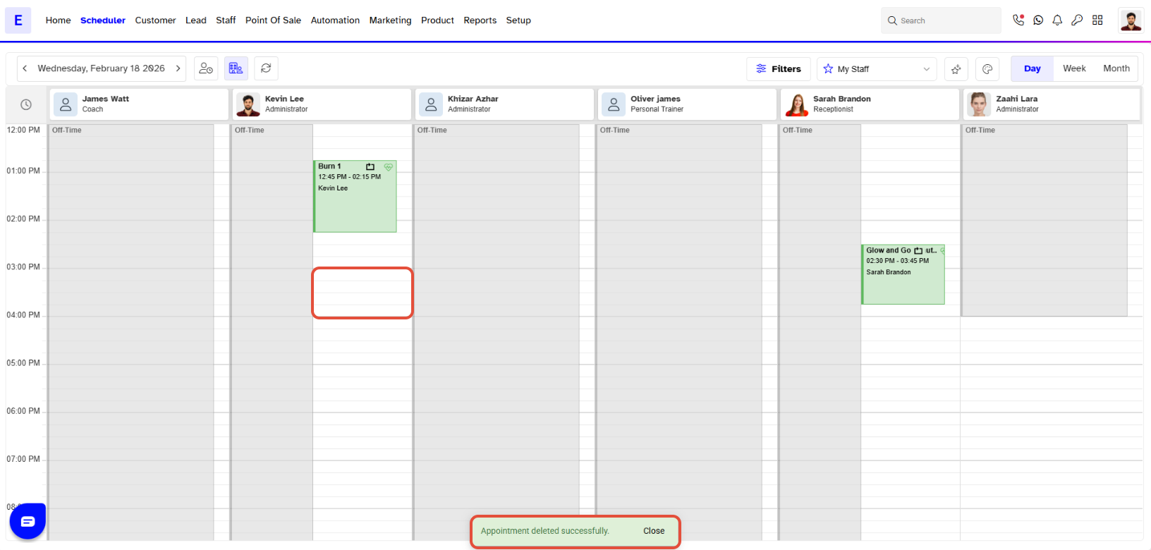 Once you have Deleted your Appointment, it will no longer be visible in the Scheduler module.
