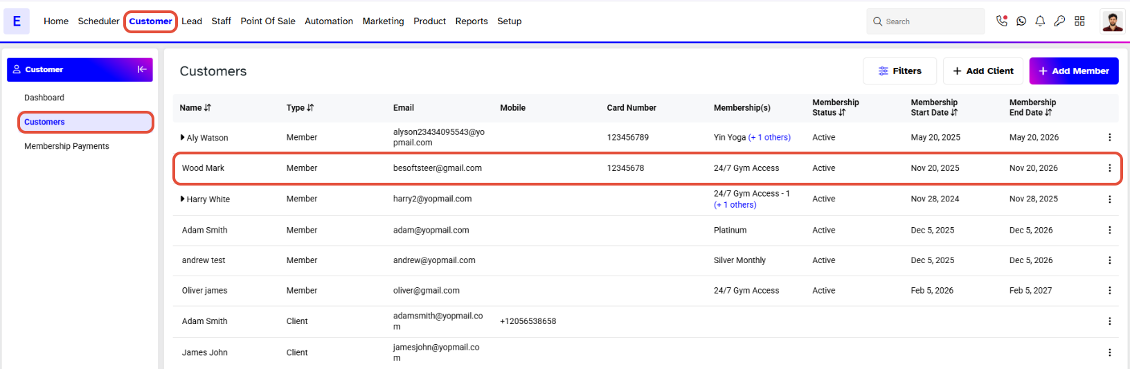 To schedule an Appointment, merchants have to go to the Customer Module. By default, you will be taken to the Customers Segment. Click on the name of the Customer for whom you wish to schedule an Appointment.