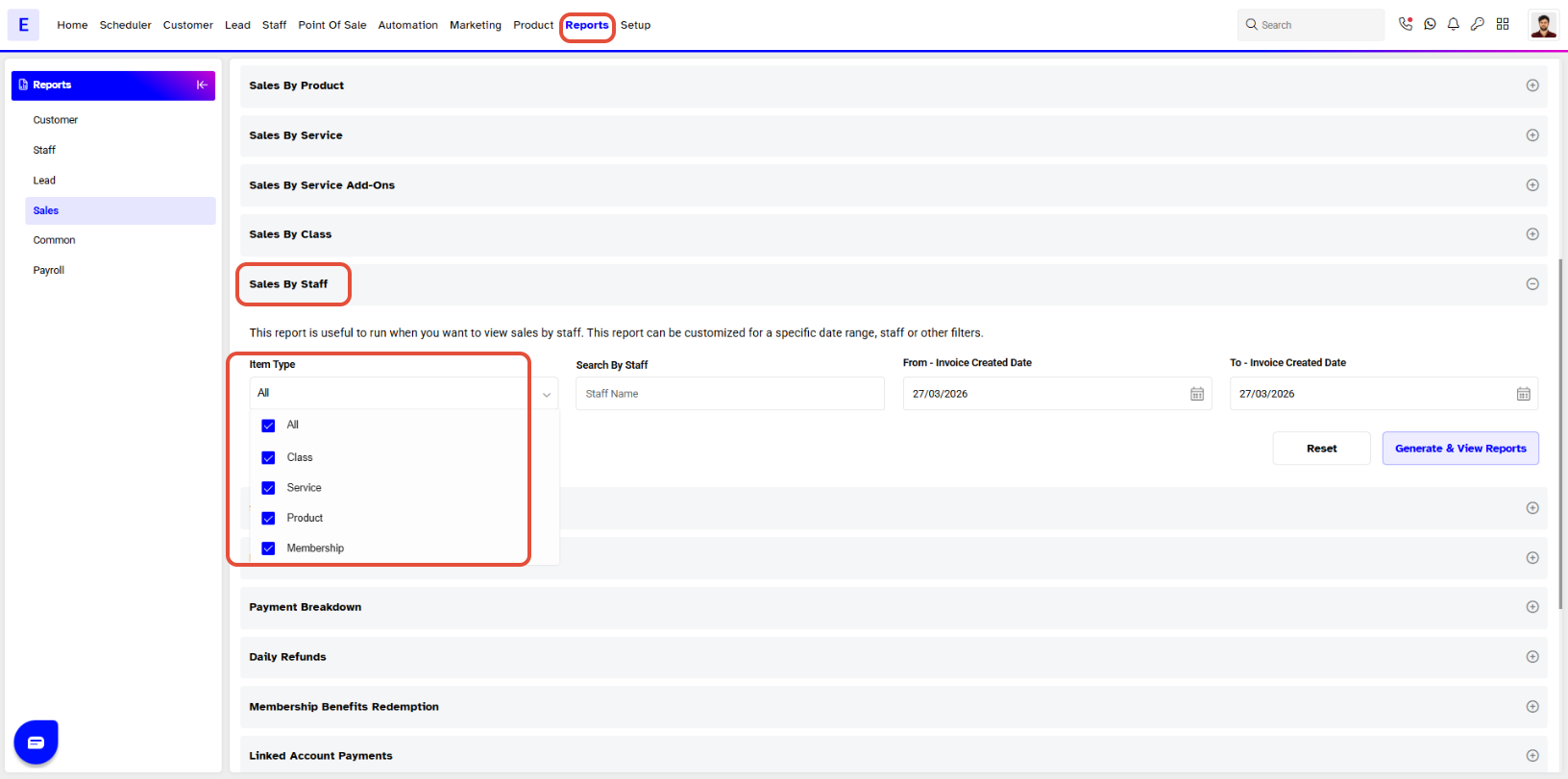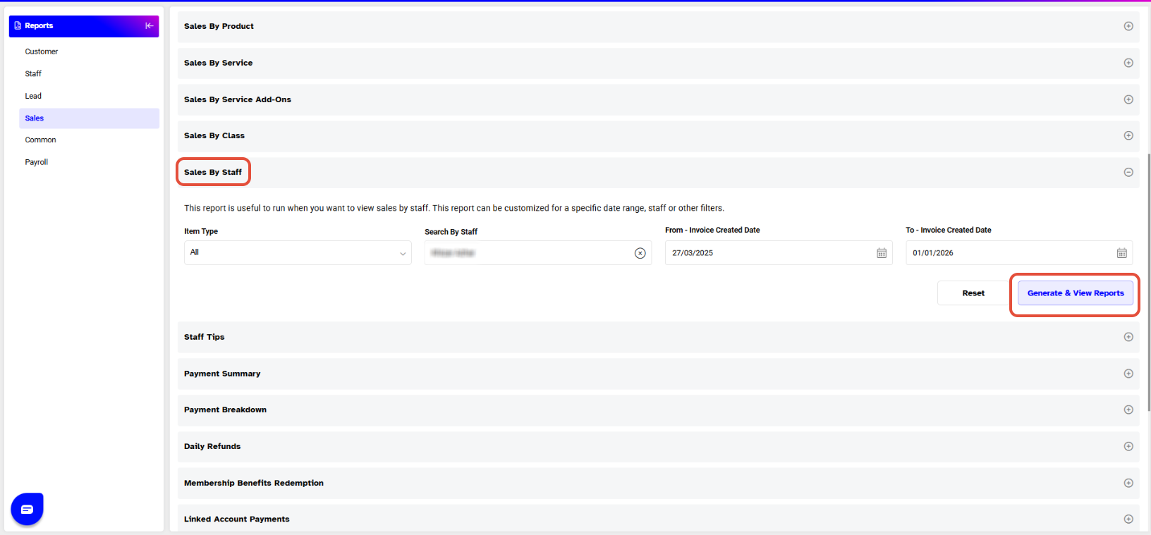Step 2: Select the Sales By Staff Report