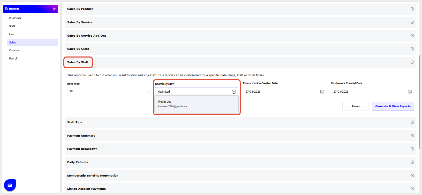 How To View The Sales By Staff Report In Core