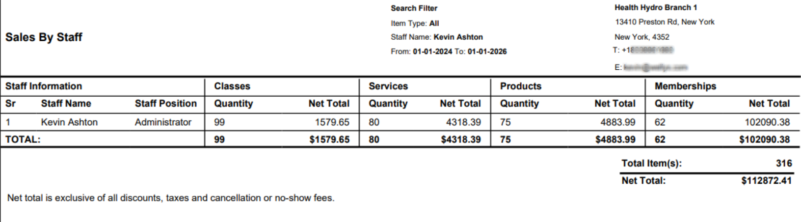 This Report is useful to run when you want to see Sales Information for Memberships/Products/Services/Classes sold by Staff.