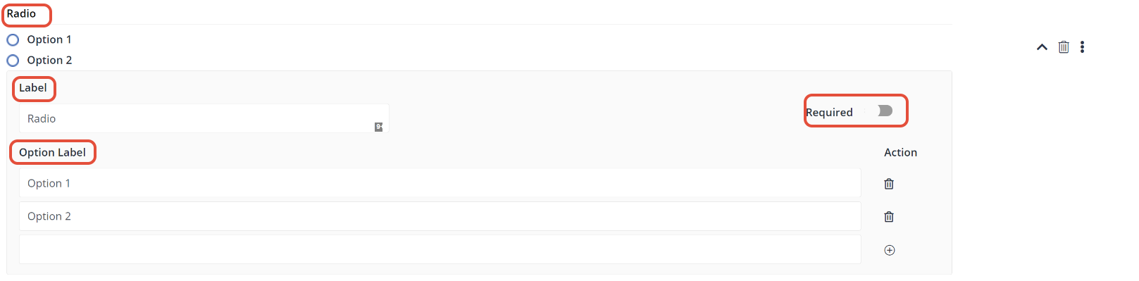 - Option Label: The name next to the radio button that will appear on the live form.