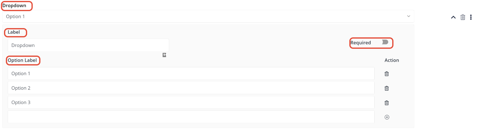 - Option Label: The options that will appear in the dropdown on the live form.