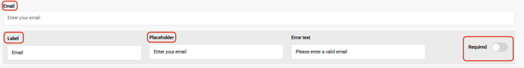 - Error Text: Error displayed to Customers who provide an email that does not meet the validation requirements of an email.