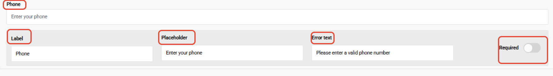 - Error Text: Error displayed to Customers who provide a phone number that does not meet the validation requirements of a telephone number.