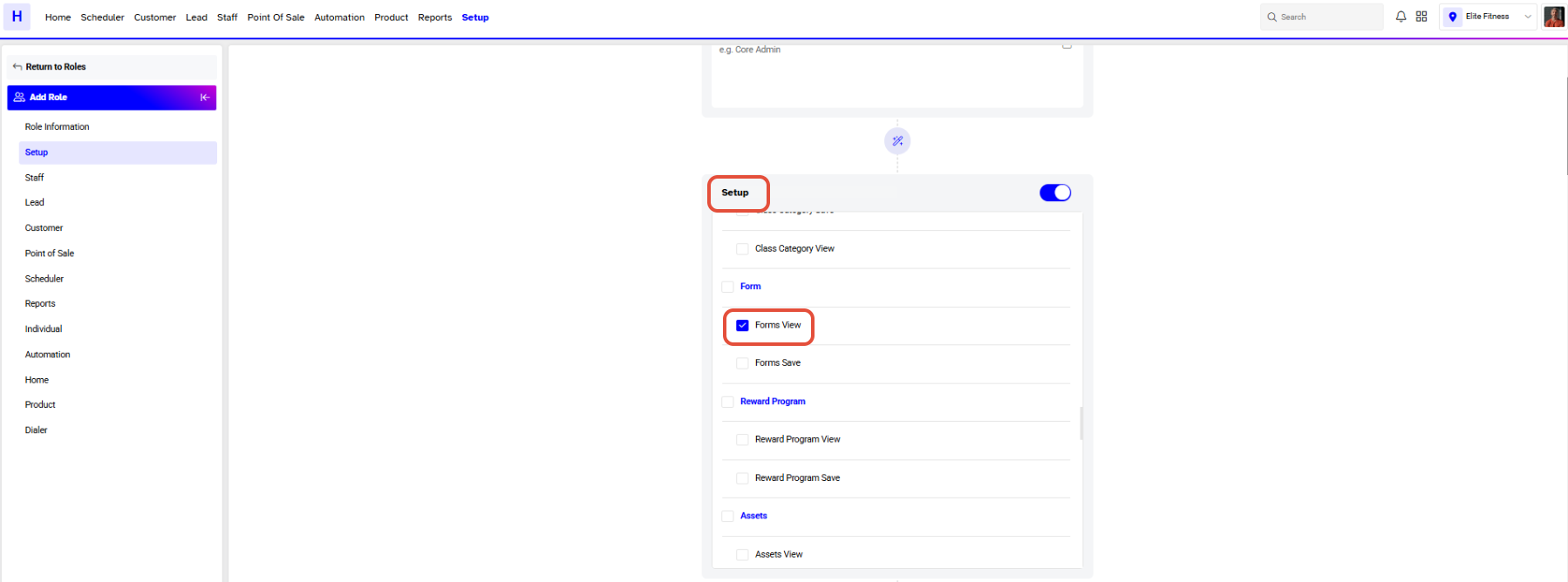 - Forms View: This role allows the user to view the forms but not add, edit or delete the forms in that particular module.
