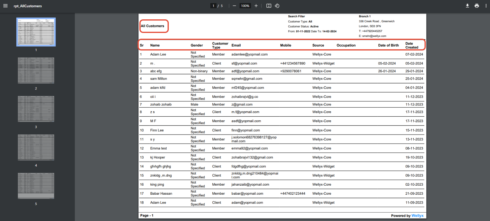 This report explains how many Customers are present within the system. Furthermore, it shows Member details based on date range and status.