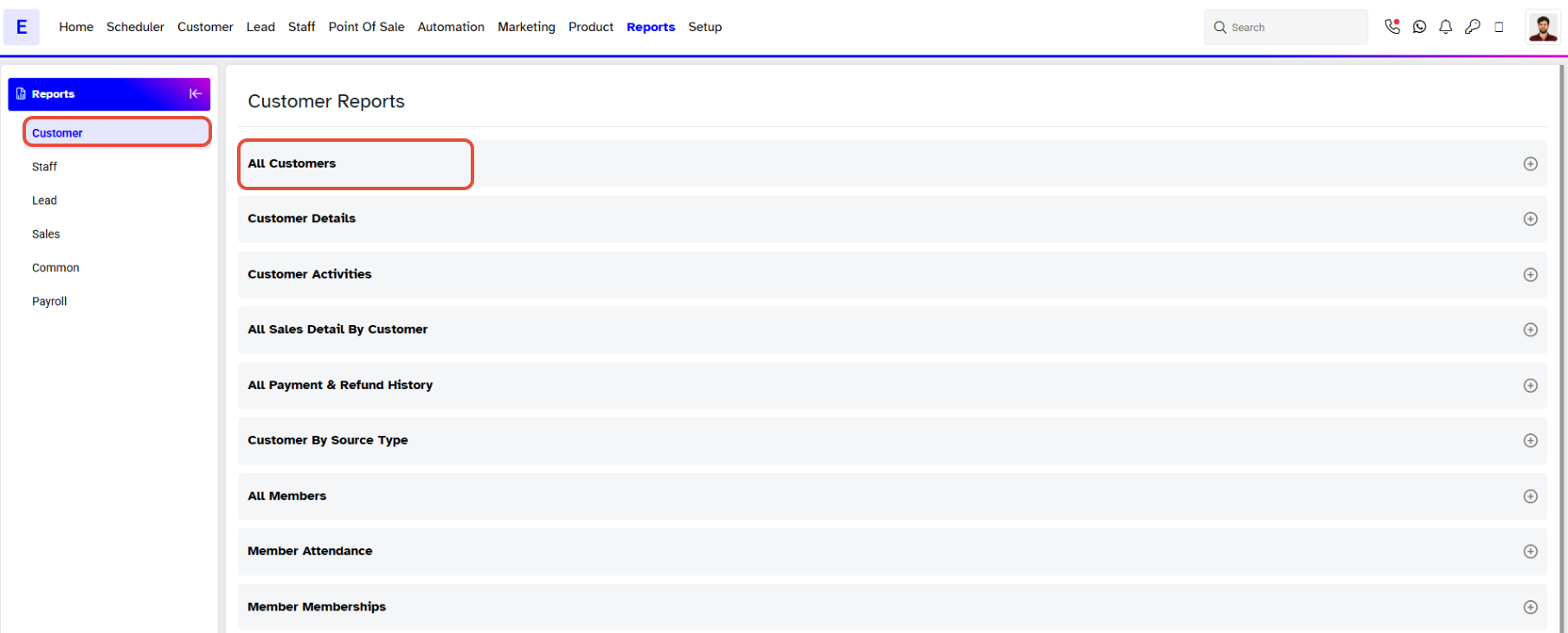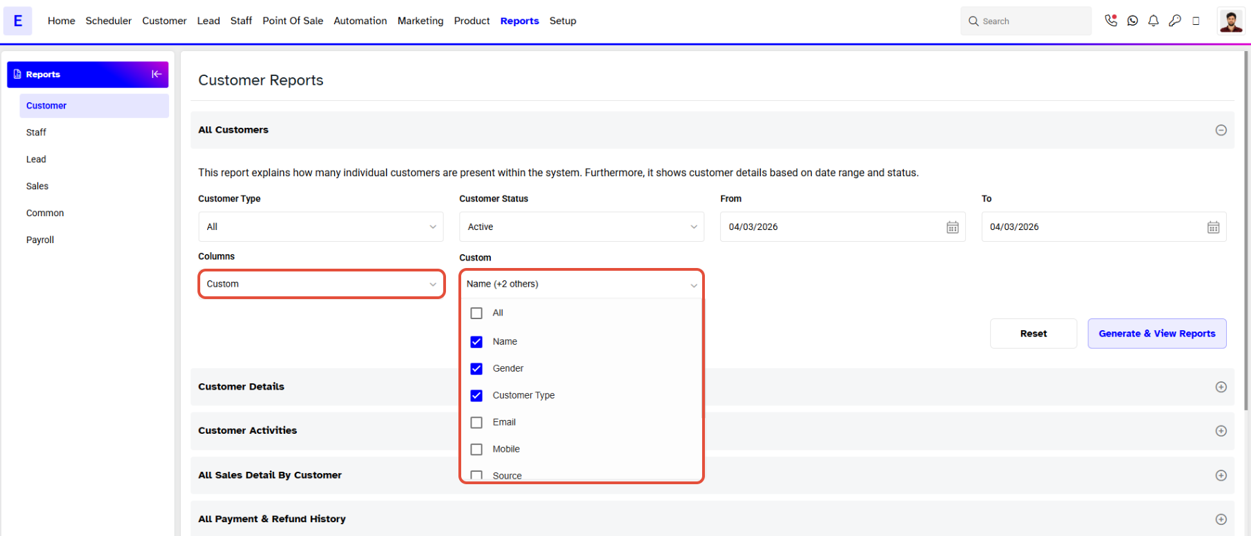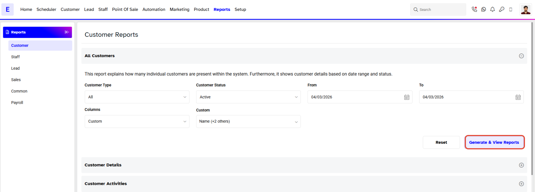 - Select All Customer Type and Customer Status from the dropdown menus.