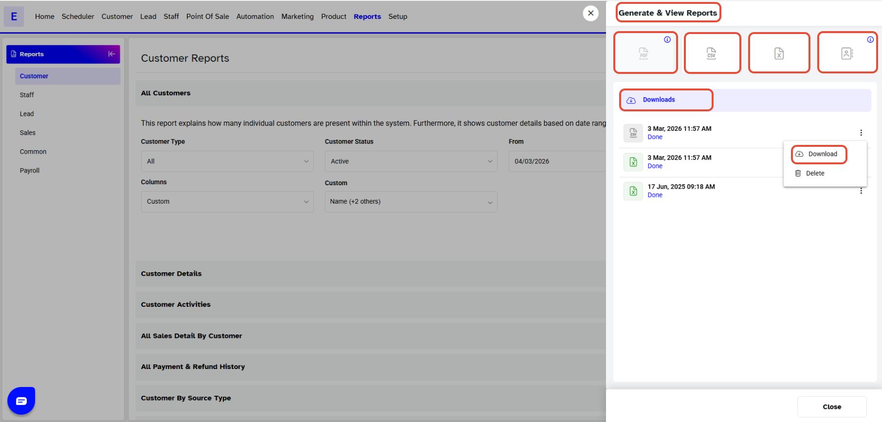 - After generating the Report, you can download it by clicking on the Download Icon.