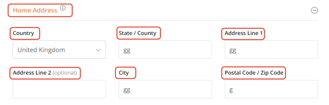 Select a Country from the dropdown menu. Enter State/Country and Address Line 1. Under Address Line 2 you can add more details of an address such as apartment number etc. Enter City and Post Code/Zip Code.