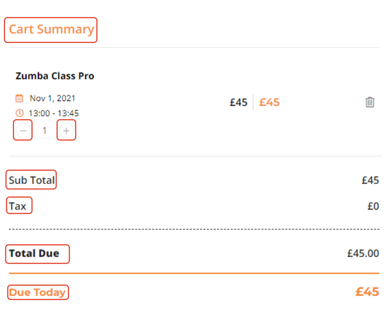This section will display a summary of the items that have been added in the Cart. Click on - or + to increase or decrease the units of an item.