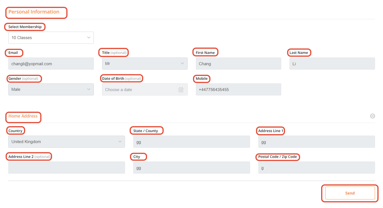 Title, Gender and Date of Birth are optional fields.