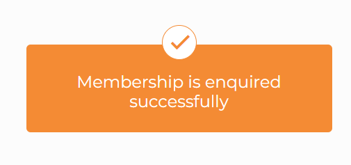 A Membership is enquired successfully message will appear on a new screen, confirming the enquiry.