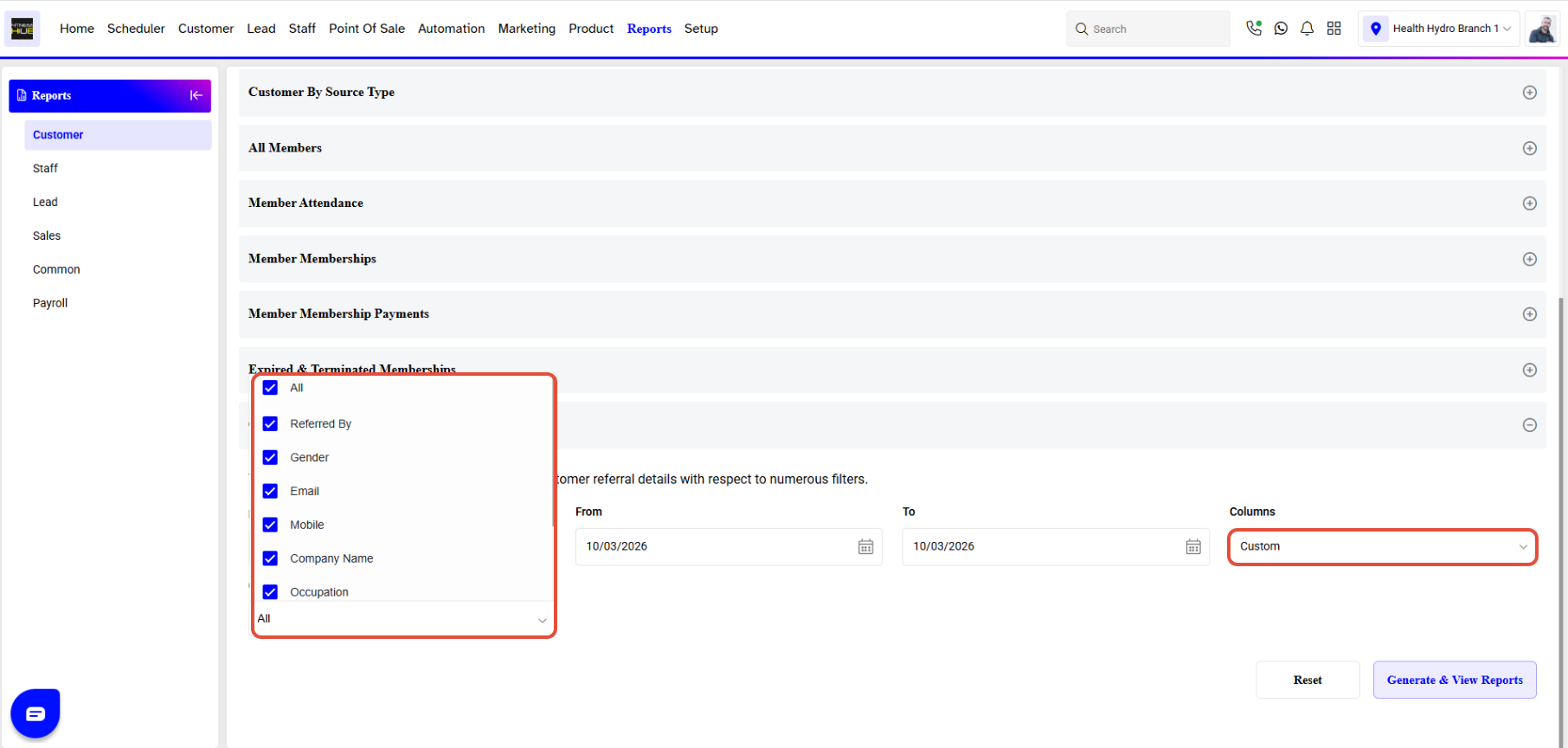 If Customer Name is left empty, then the Report viewed will be for all the Customers present in the system.