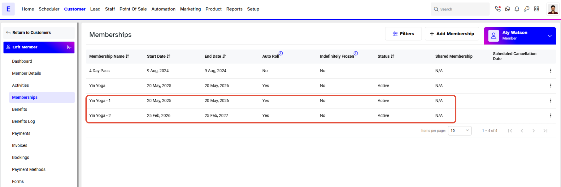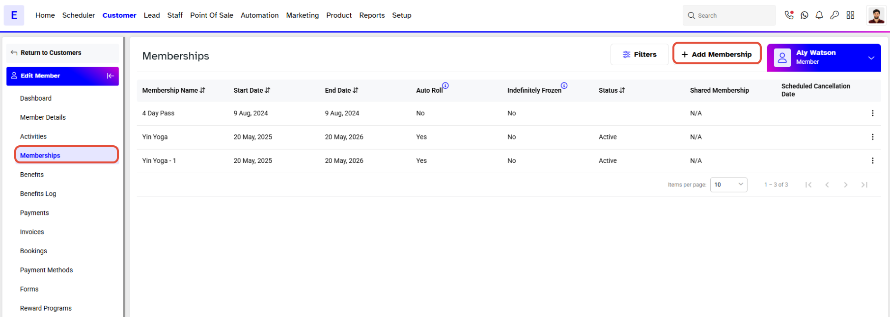 - Click on the Add Membership Button.