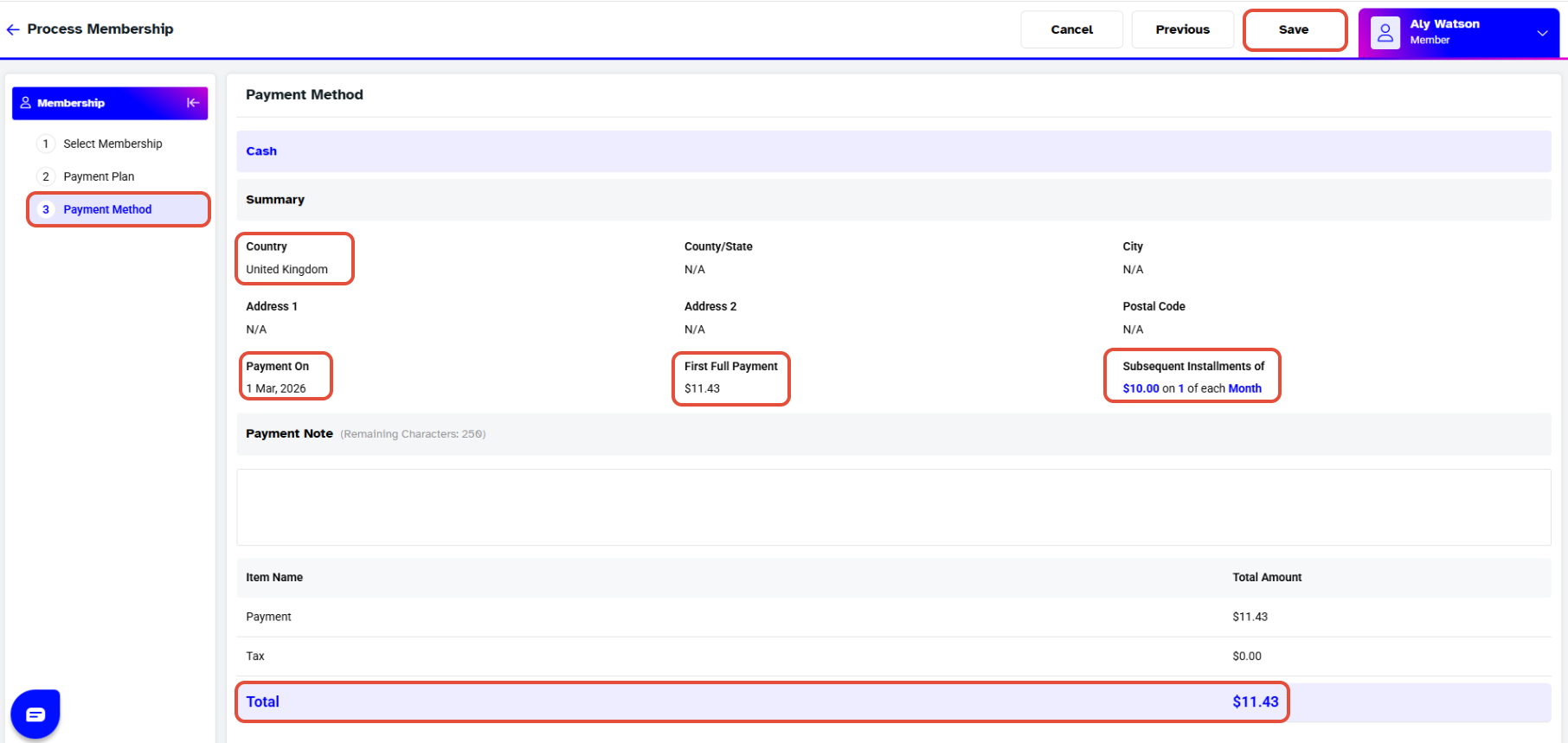 Step 6: Review Payment Method and Save the Membership