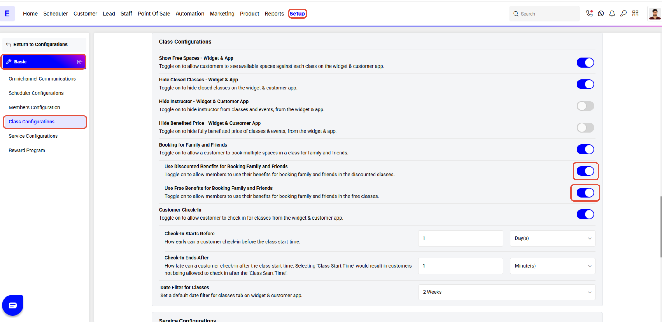 Now, toggle on the Use Discounted Benefits for Booking Family and Friends Button if a Customer can book Discounted Classes for Family and Friends.