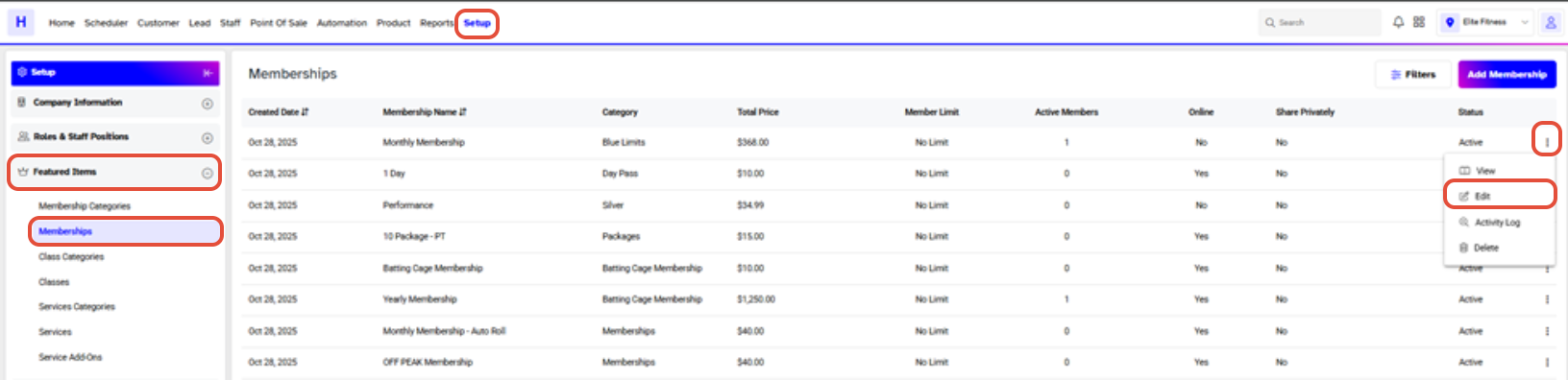 Click on the Edit Icon under Actions against a Membership.