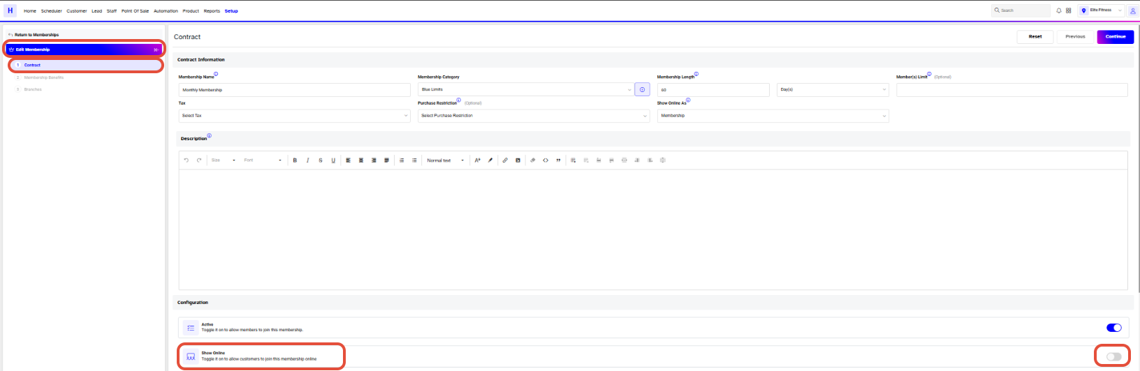 When Show Online Button is toggled off, the Customers would not be able to see the Membership on the Widget and Customer App.