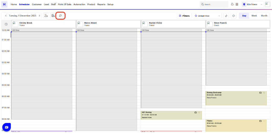 Click on the Refresh Icon to Reload the Scheduler.