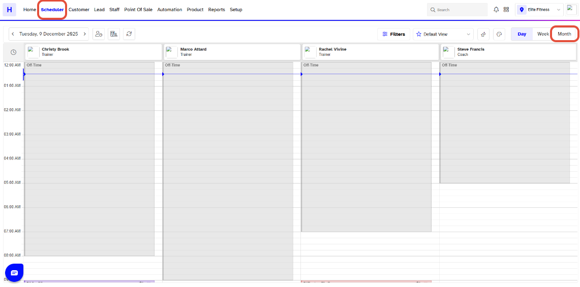 To View the Scheduler in Month View, follow the below steps: