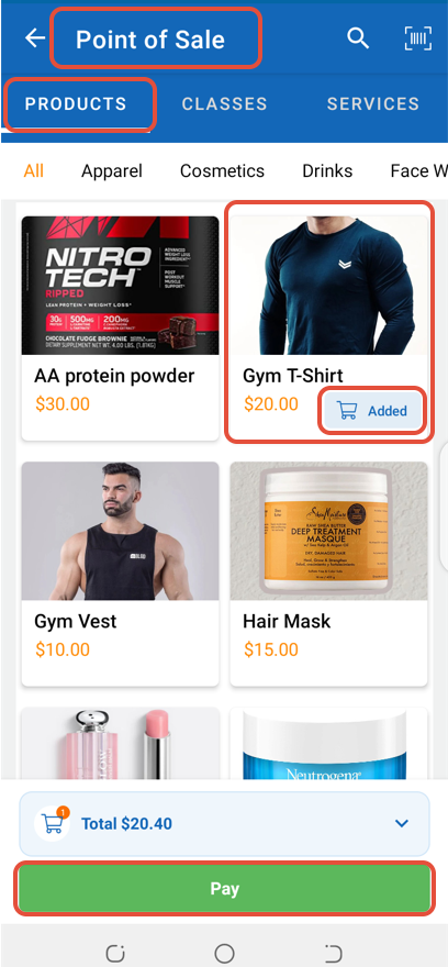 Now, click on a Product and then on Pay.