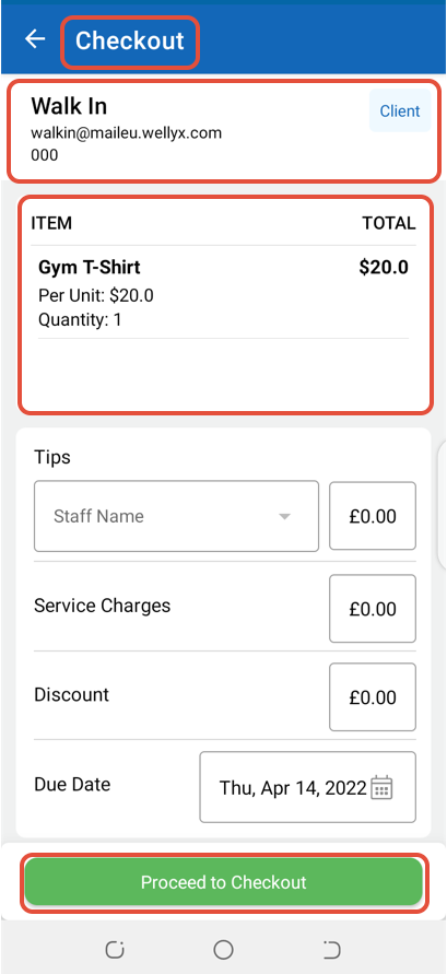 To perform Checkout for a Walk In Customer on the Staff App, follow the steps below.