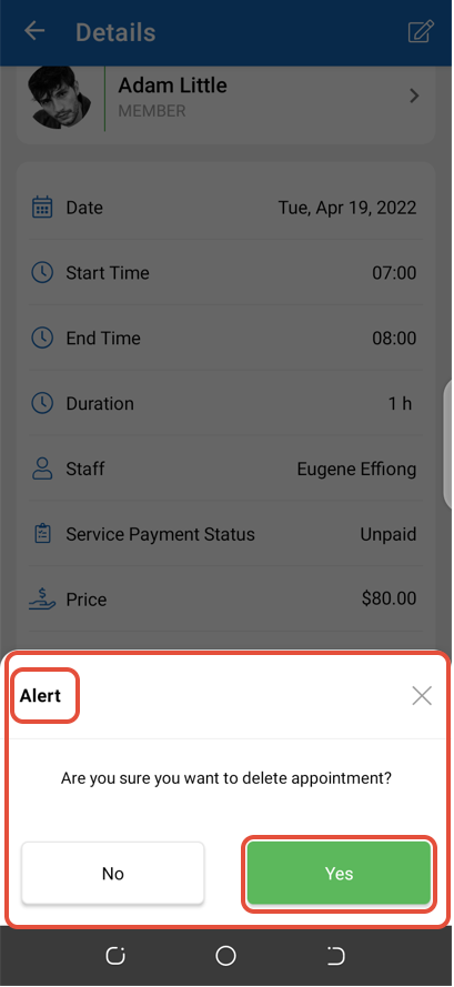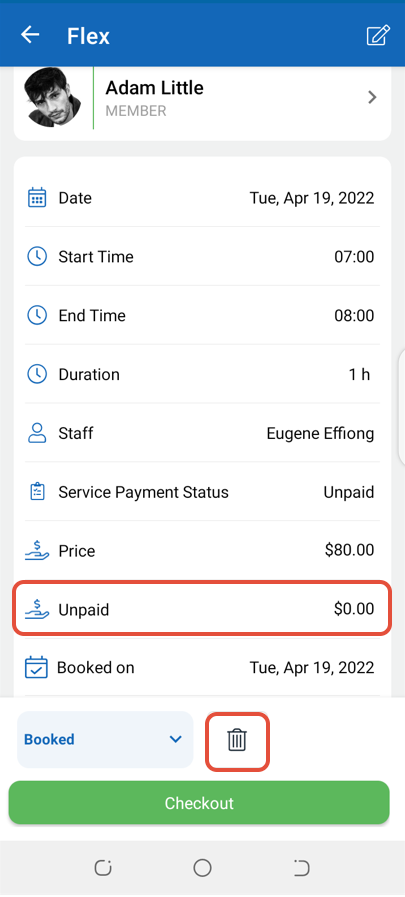 To Delete an Unpaid Service through the Staff App, follow the steps below.