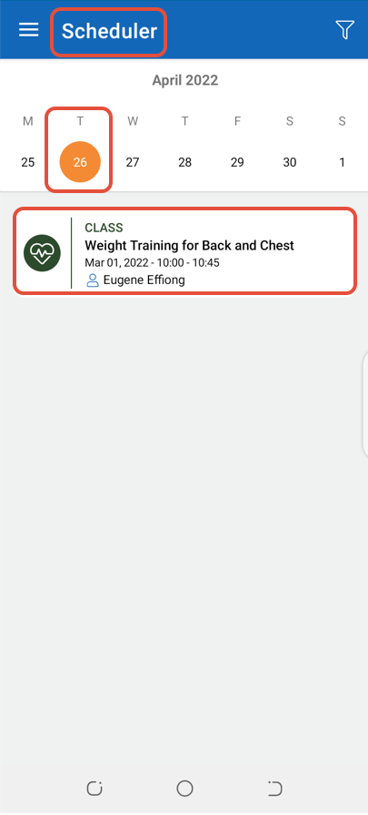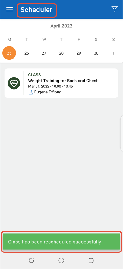 To Reschedule the Class of a Customer through the Staff App, follow the steps below.