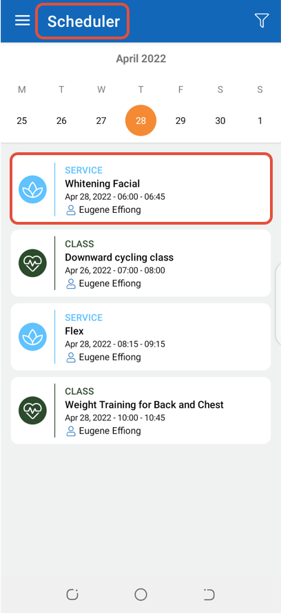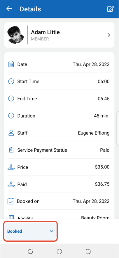 To Late Cancel a booked Service through the Staff App, follow the steps below.