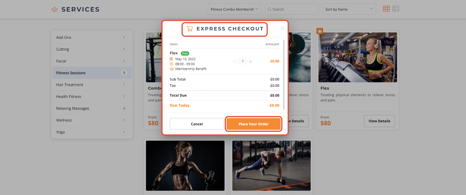 Express Checkout can only be performed on a Free Class, Service, and Product through the Widget and Customer App.