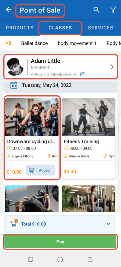 To Partially Pay for a Class through the Staff App, follow the below steps.