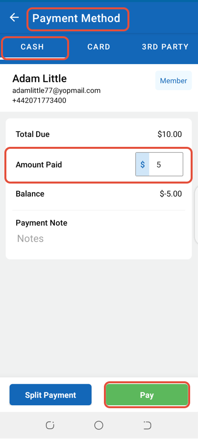 Now select a Payment Method and enter the Amount Paid. Once done, click on the Pay Button.