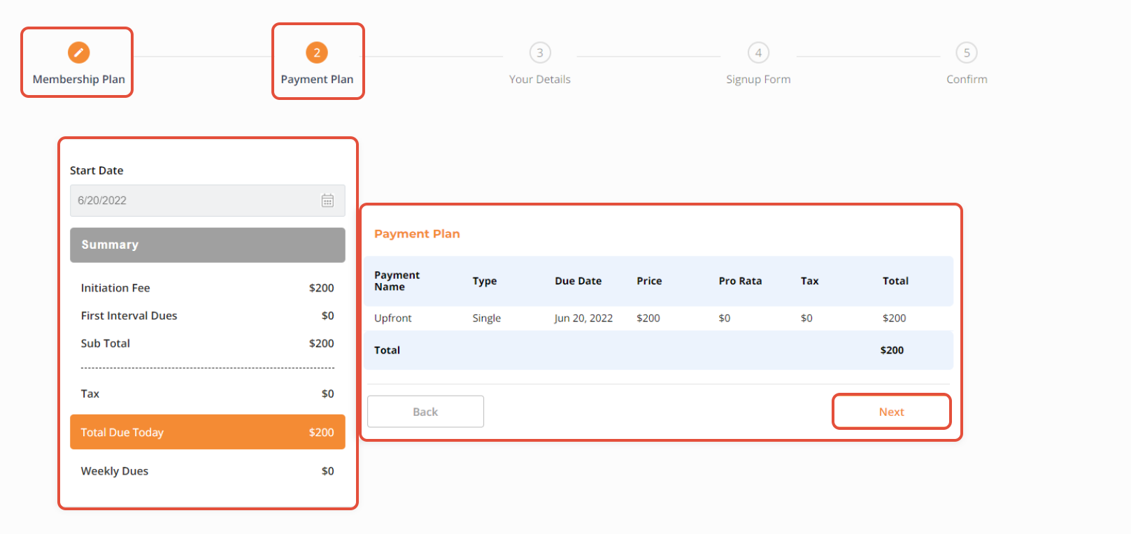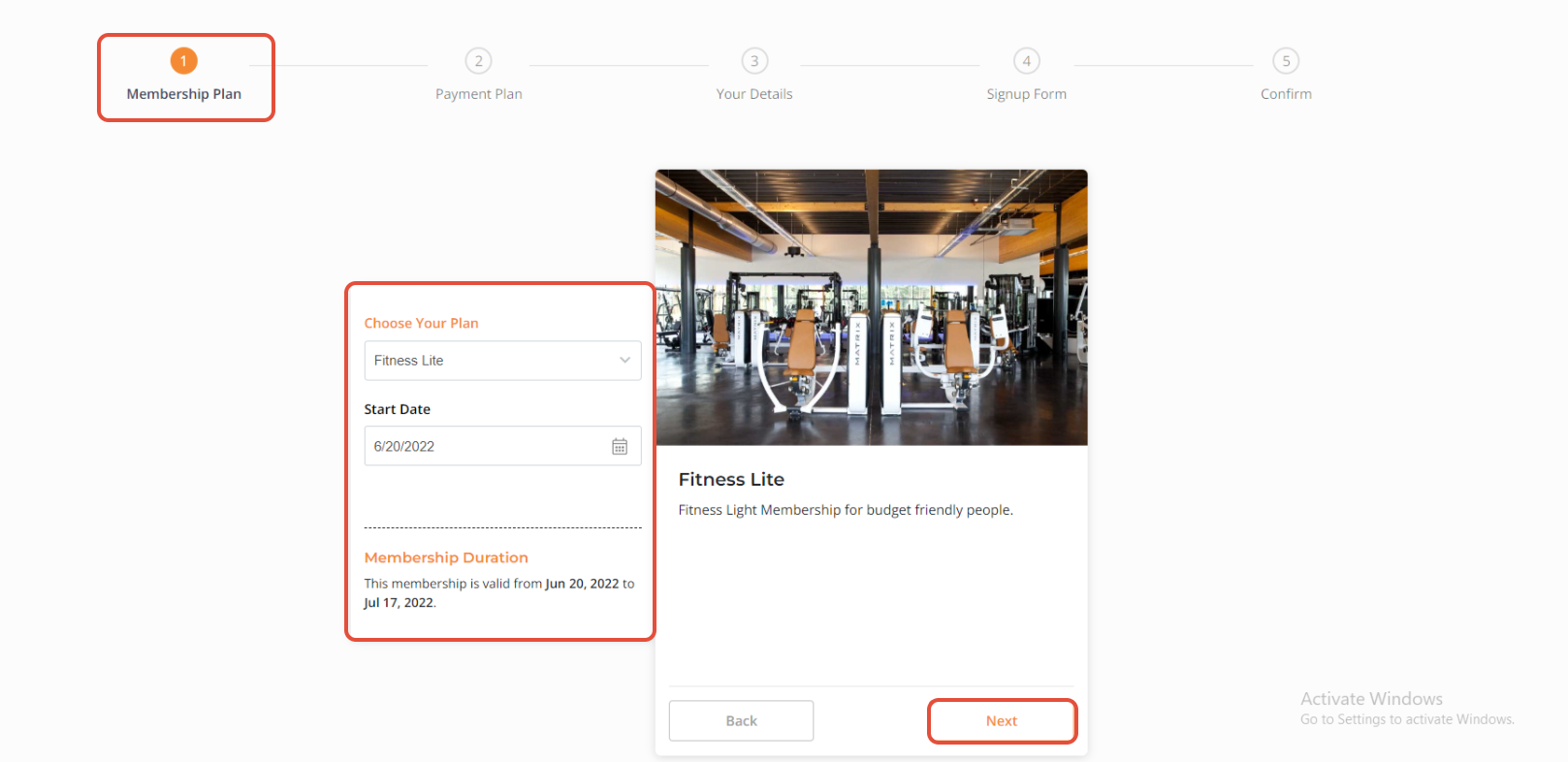 Once checked all details against the Membership Plan, click on the Next Button.