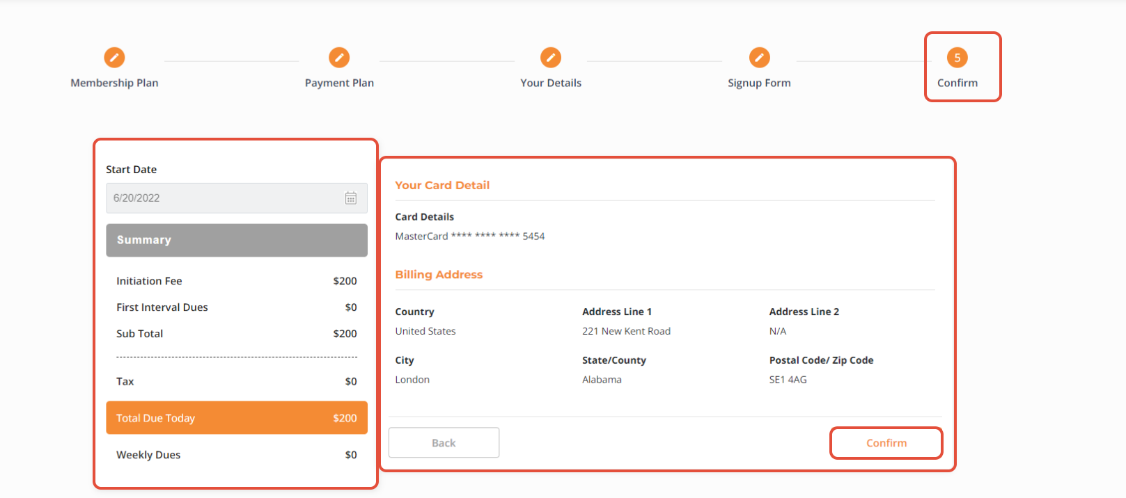 Once all the Details have been Reviewed, click on the Confirm Button to Process the Membership.