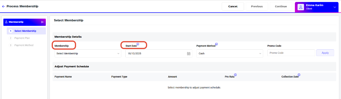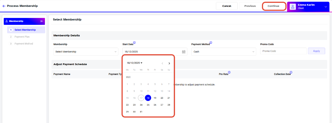 Choose a Different Start Date from the Dropdown Box and click Continue.