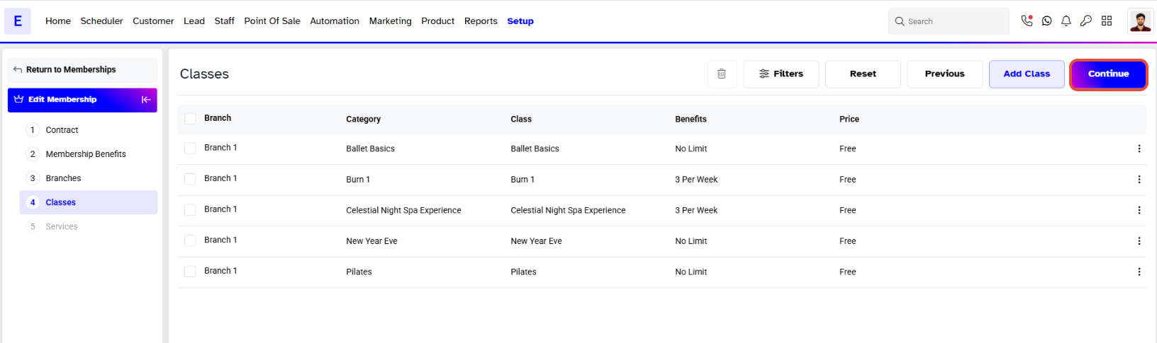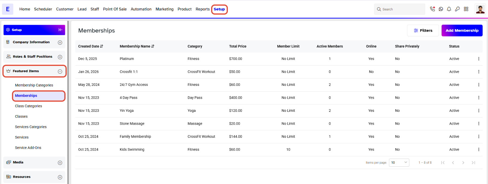 Select Memberships from the Memberships Tab.