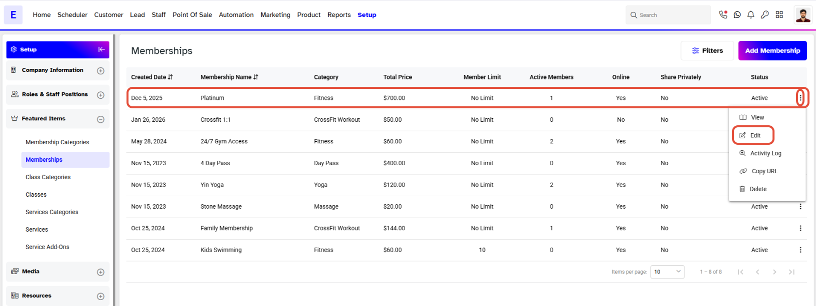 Whilst in Memberships, click on the Edit Icon against a Membership.