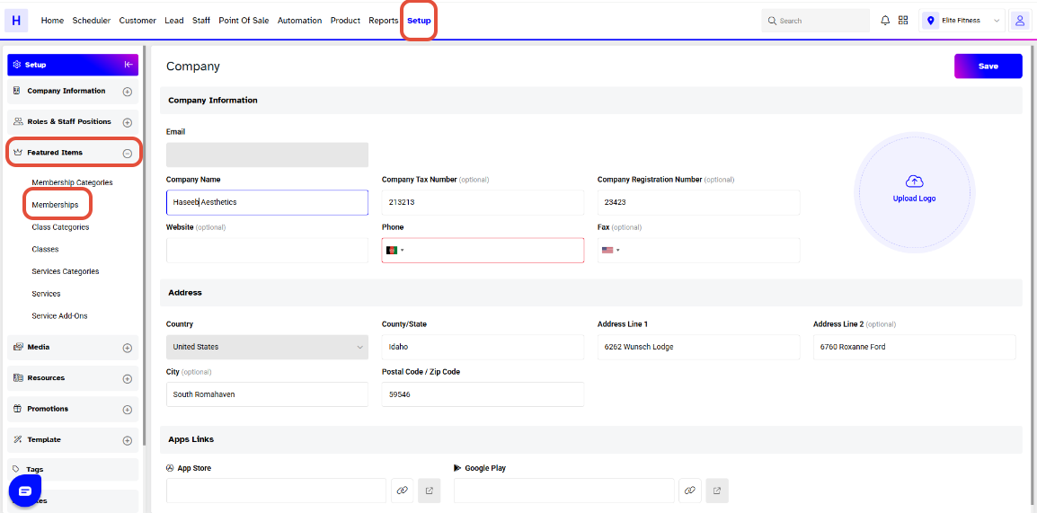 Click on the Featured Items Tab and select the Membership option.