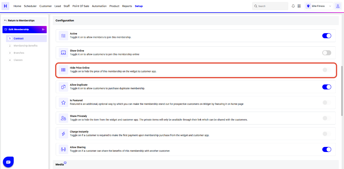 To Show the Price of a Membership on the Widget and Customer App, follow the below steps.