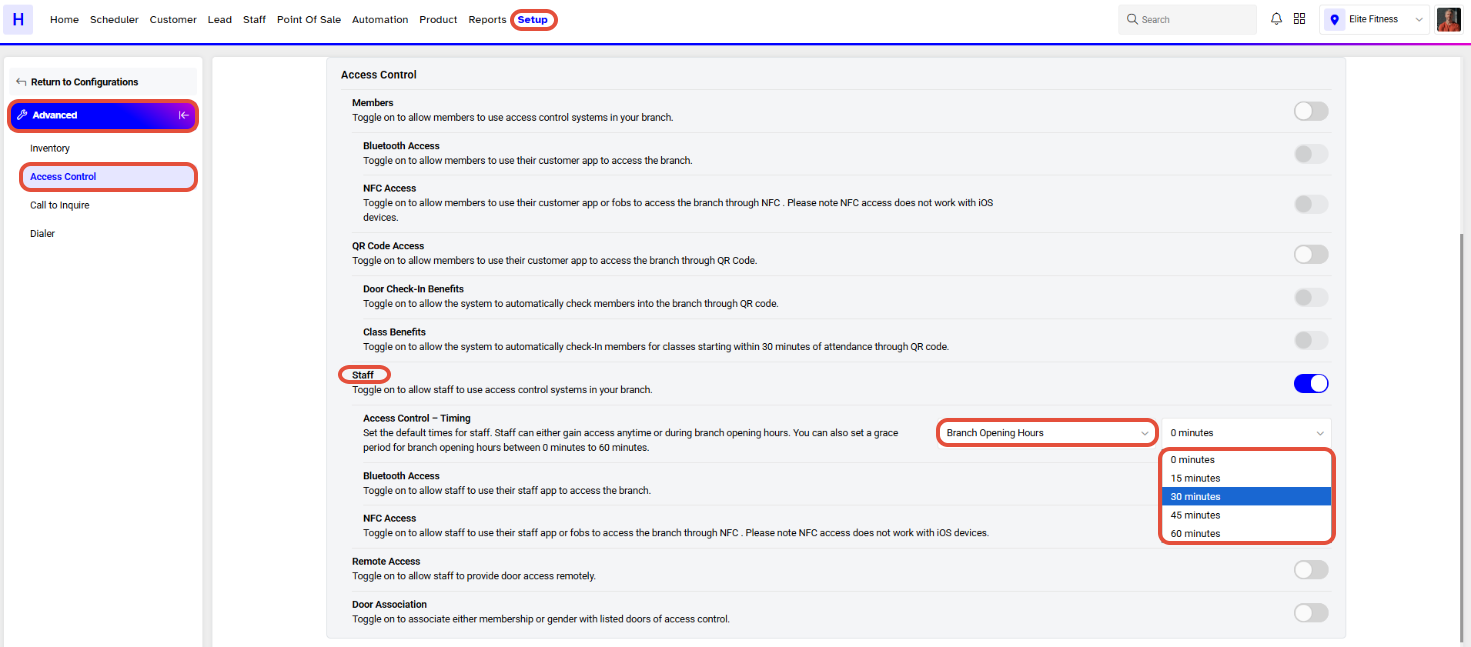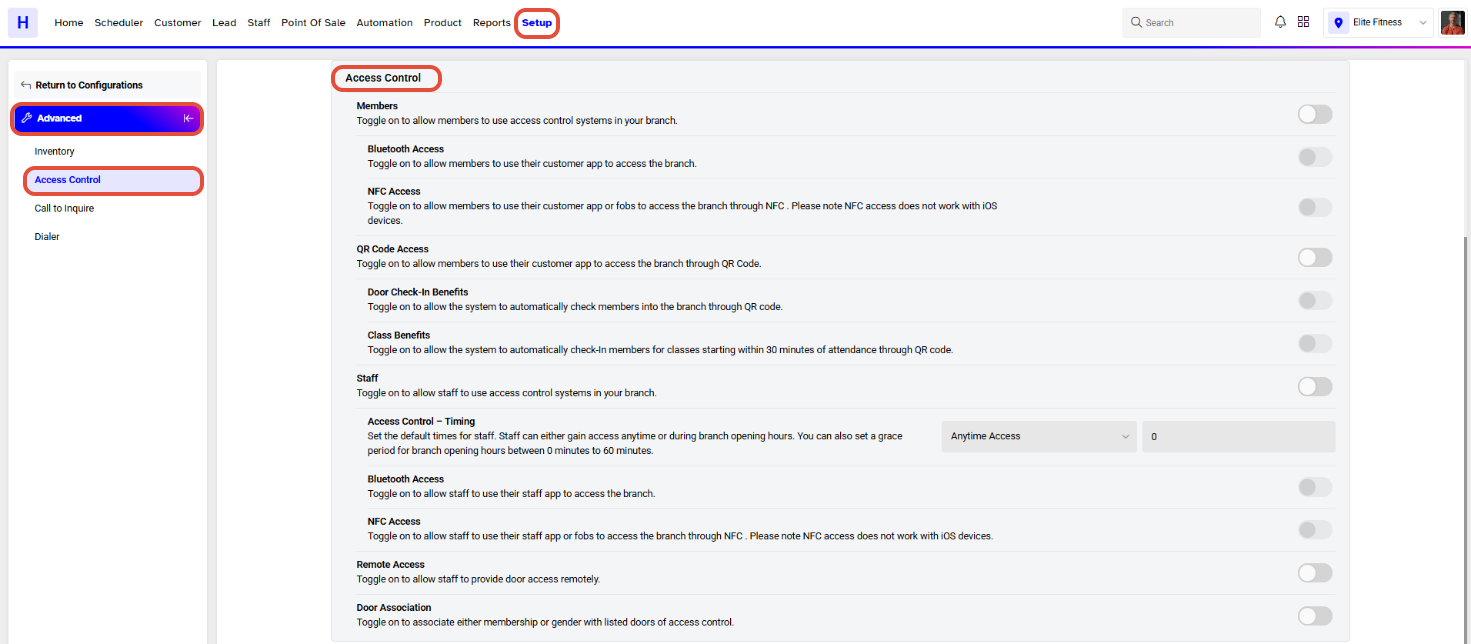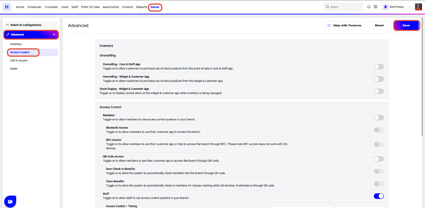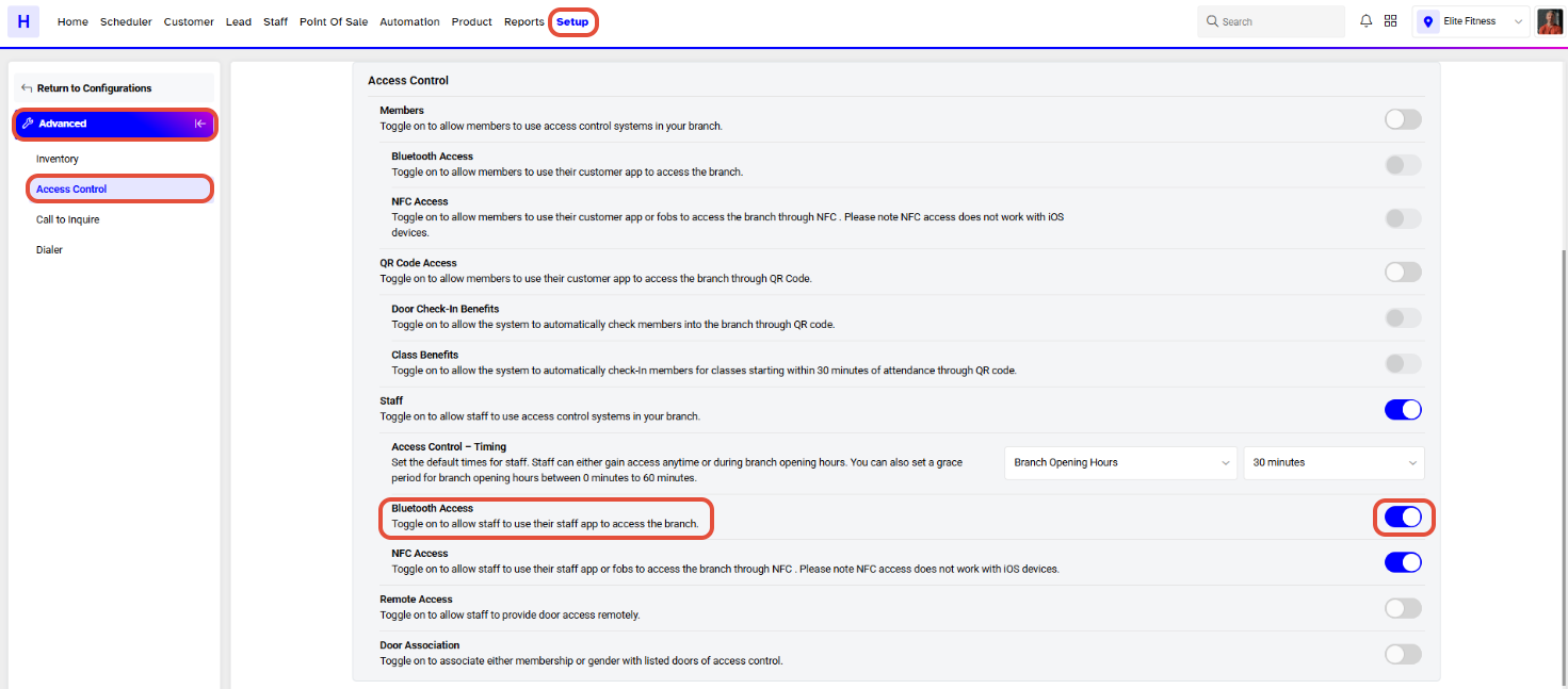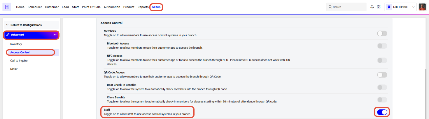 Now toggle on the Staff Access Control Button.