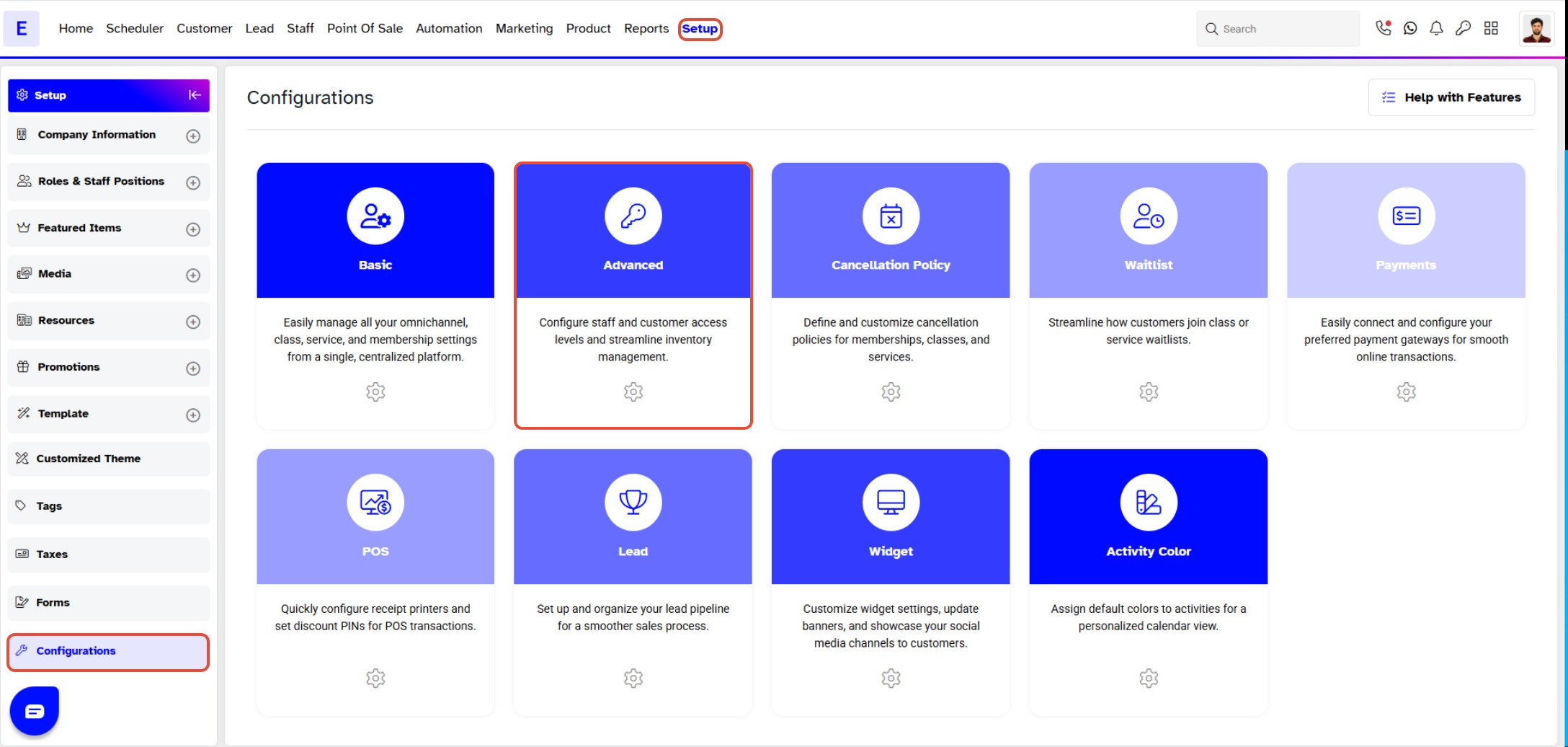 Go to the Setup Module.