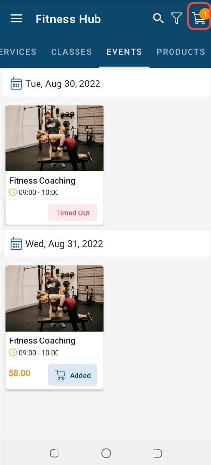 In the Event Details Screen, click on Add To Cart Button.