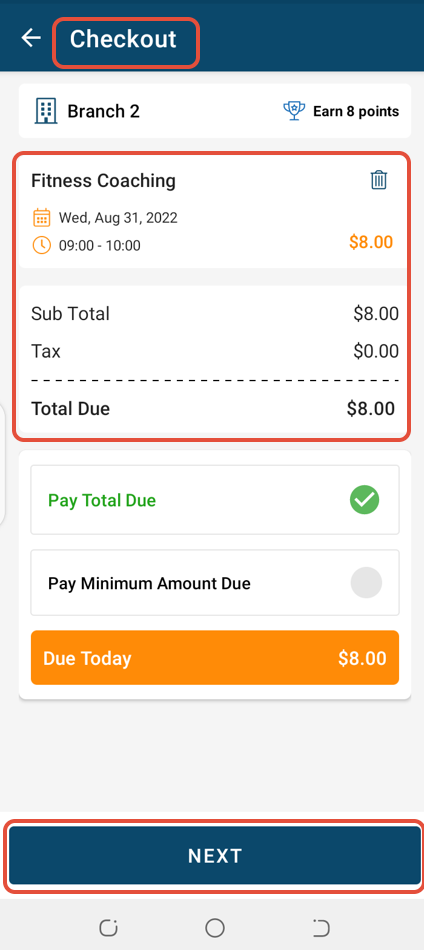 Once in Checkout, confirm the Event details and click on the Next Button.