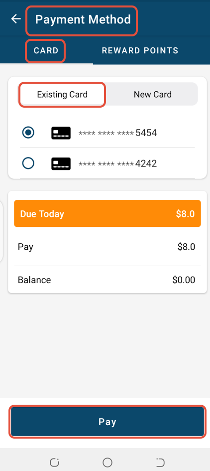 Whilst in the Payment Method Screen, select a Payment Method and click on Pay.