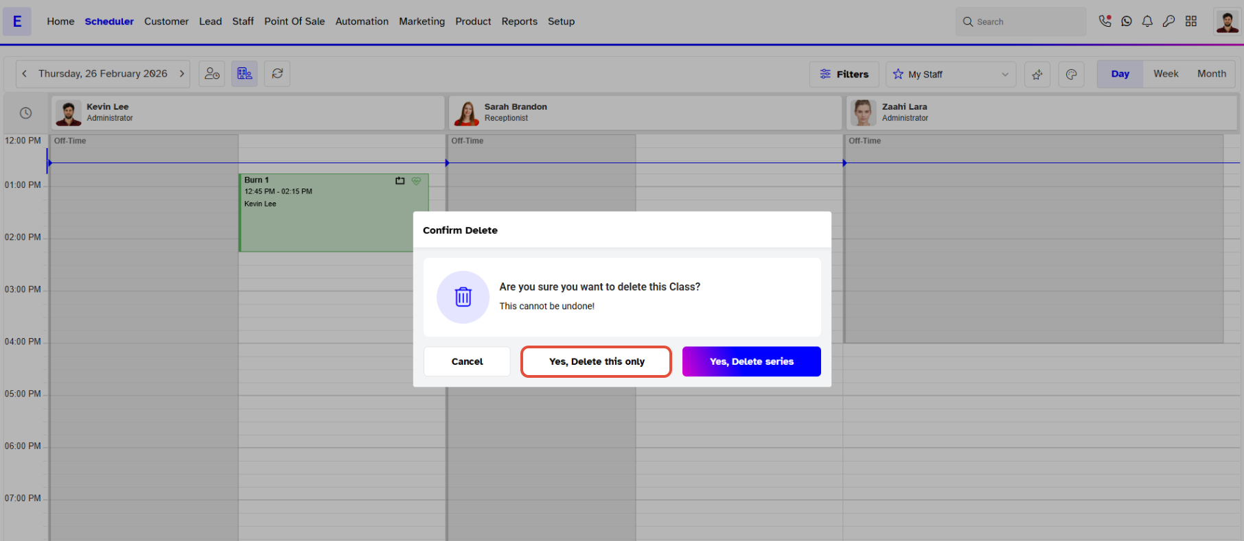 - Once in Confirm Delete Box, click on the Yes, Deletes this Only Button.