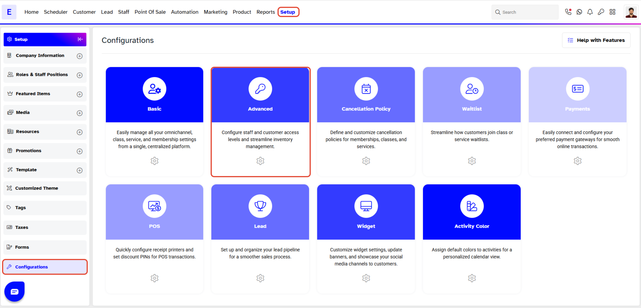 Go to the Setup Module.